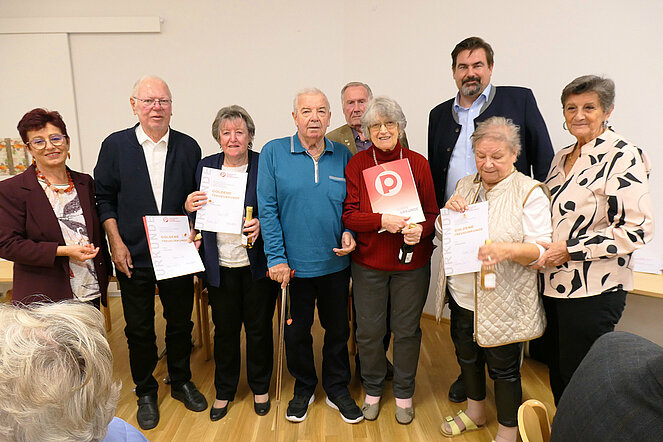 Im Zuge unserer Hauptversammlung 2025 wurden auch dieses Jahr an vielen zu Ehrenden von Bgm. Ing. Stefan Steinbichler, Bezirksvorsitzende Renate Gamsjäger und Obfrau Susanne Passet, Urkunden, Ehrennadeln und Sekt überreicht.