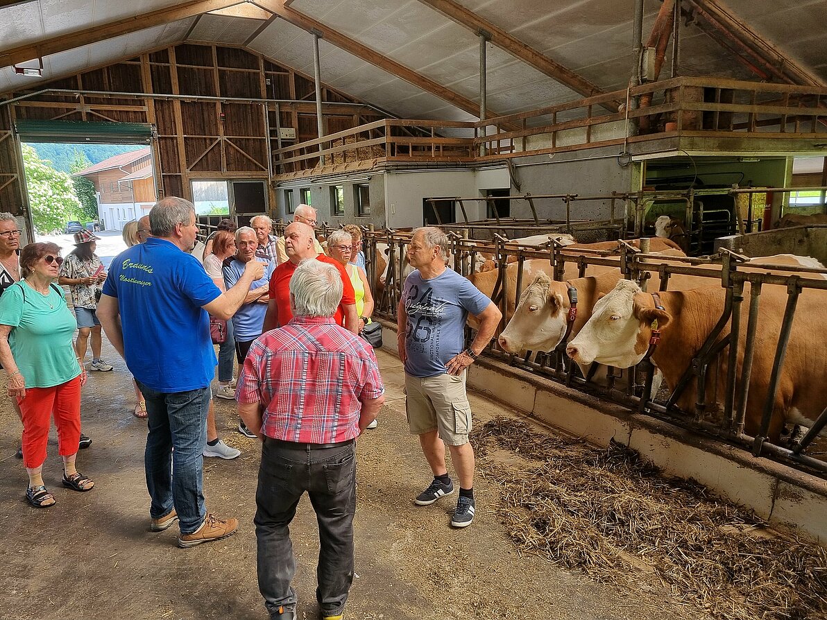 Wunderbar war unser Besuch mit Führung und Besichtigung beim Bauernhof der Familie Braunsteiner in Rabenstein. Unser Rad-Beauftragter Heinz hielt wachsam ein Auge auf jene, die mit Fahrrad anreisten. Das letzte Wegstück war ja doch etwas steiler, die Vorteile der E-Bikes eindeutig. Die Milchwirtschaft mit dem Melkroboter und die Anlagen zur Safterzeugung wurden vom Hausherrn erklärt. Anschließend verkosteten wir die herrlichen Säfte aus der Eigenproduktion und so mancher nahm sich nicht nur ein Saft-Flascherl mit nach Hause.