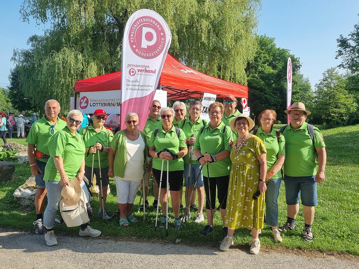 Die neu angeschafften apfelgrünen Vereins-Poloshirts, mit unserem Ortslogo, machten uns zum „Blickfang beim Landeswandertag des PVÖ in Viehofen.