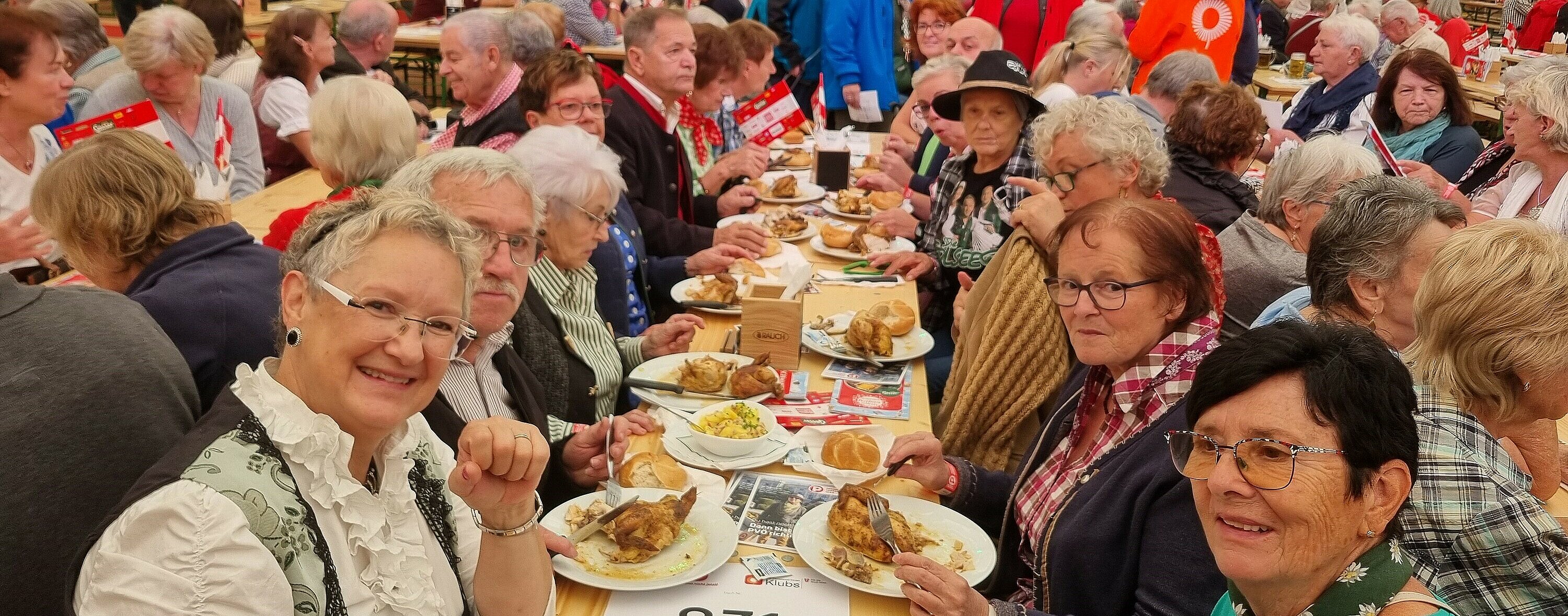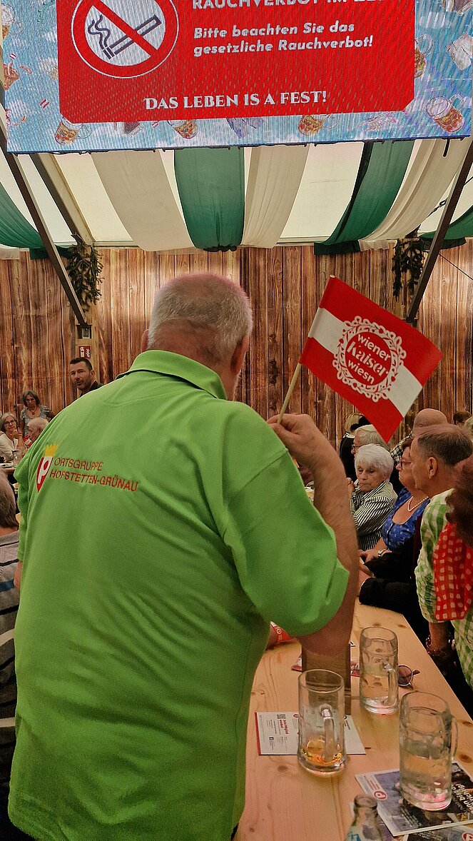 Die seit Monaten geplante Anreise mit den Öffis nach Wien zur Wiener Wiesn fiel sprichwörtlich wegen dem vorangegangenen Hochwasser mit der Sperre der Westbahn „ins Wasser“. Das konnte unsere zwanzigköpfige Gruppe im Trachtengewand nicht davon abhalten, mit Ersatzfahrzeugen zur PVÖ-Veranstaltung Anfang Oktober im Gösser-Zelt im Prater anzureisen. Die Vorgruppen brachten Stimmung in das volle und festlich geschmückte Zelt. Die Hauptattraktion waren die Edlseer, die mit ihren Hits schwungvoll zum Tanz einheizten. Die Gelegenheit wurde auch von Einigen für eine Fahrt mit dem Riesenrad genutzt.
