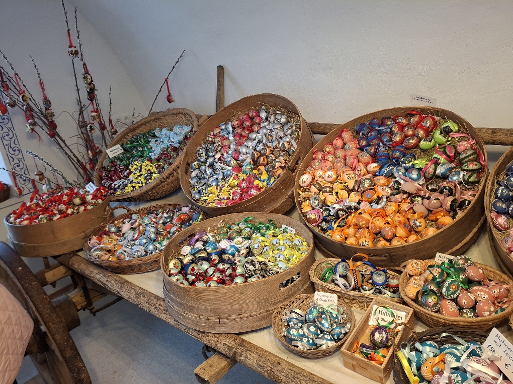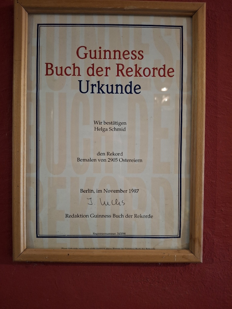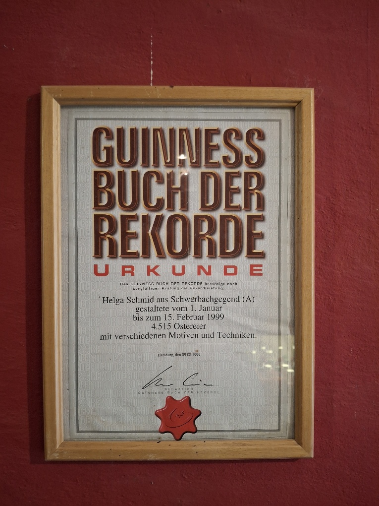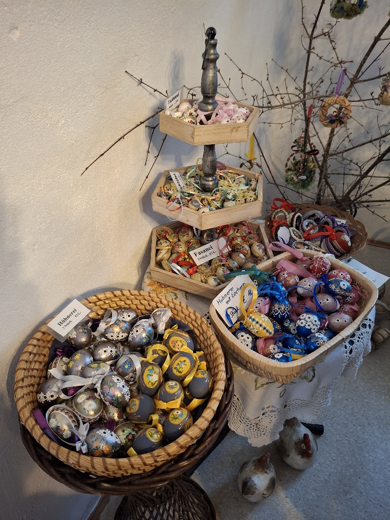 Die Osterausstellung von Helga Schmid in Kirchberg an der Pielach/Gsolhof ist wirklich sehenswert. Die 40 TeilnehmerInnen unseres Ausflugs konnten über 4000 bemalte Ostereier bestaunen. Die Eier sind liebevoll mit den verschidensten Motiven gestaltet. Frau Schmid ist sehr stolz, dass sie derzeit den Weltrekord in Ostereierbemalen inne hat.
