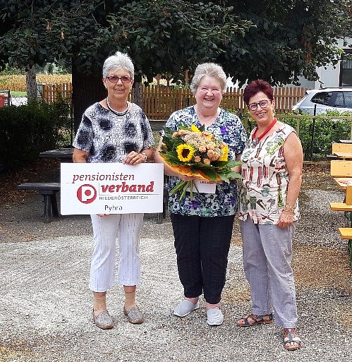 Die Vorsitzende Josefa Hagl überreichte Christine Anderl (Kassierin, Reisereferat) für ihre langjährige verlässliche Arbeit einen Blumenstrauß.