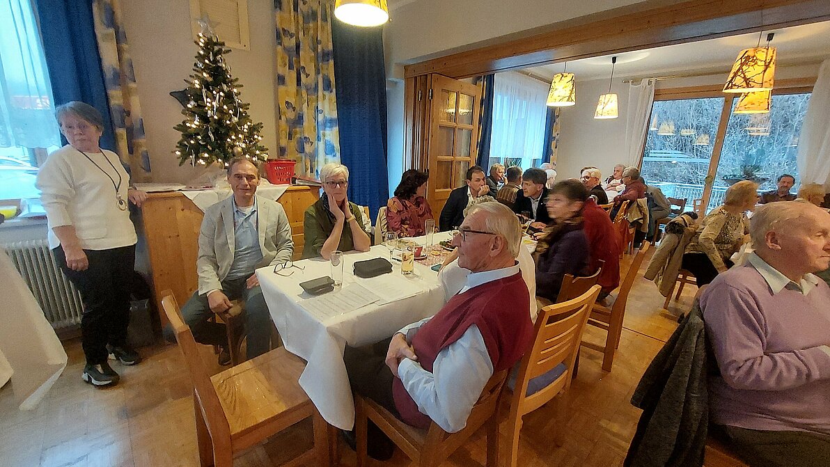 Die Gäste, die den Saal bis auf den letzten Platz füllten, feierten bei Kaffee und Kuchen garniert mit weihnachtlichen Zitherklängen sowie besinnlichen vorgetragenen Gedichten. Natürlich freuten sich alle über das nette Weihnachtsgeschenk (Weihnachtskugel den Damen und eine kl.Wasserwaage für die Herren) vom Nikolo. Viele blieben noch bis abends sitzen und genossen das so gemütliche Beisammensein und die netten Gespräche untereinander.