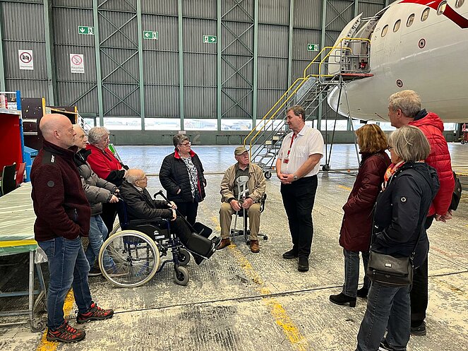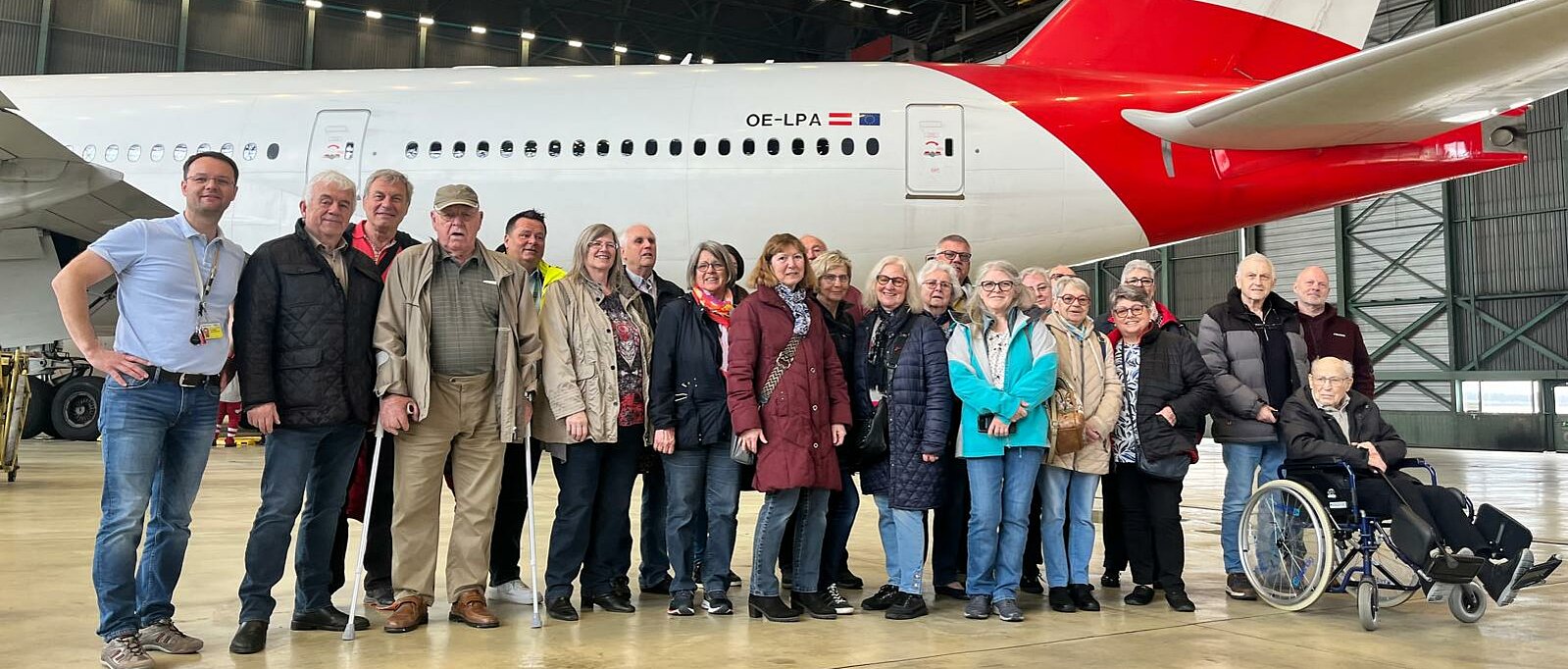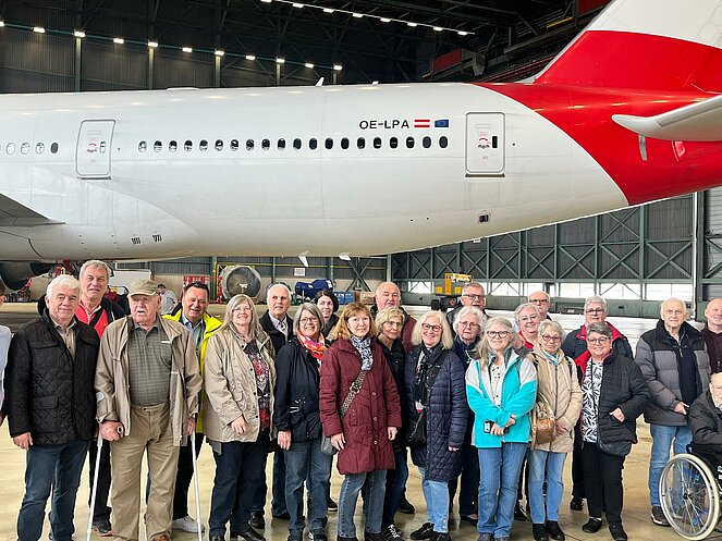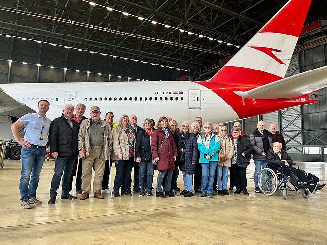 Die Besucher besichtigten unter anderem den Austrian Hangar, wo ihnen Interessantes zum Thema Flugzeugwartung an Hand einer Boeing 777 nähergebracht wurde. Nach kurzer Rast im Flugzeug selbst ging es dann weiter mit der Besucherwelt Bus Tour über das Vorfeld auf dem Flughafengelände.