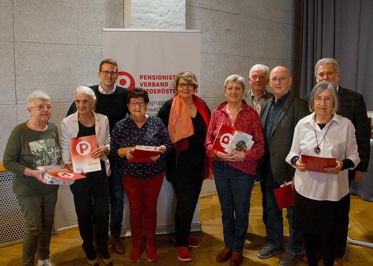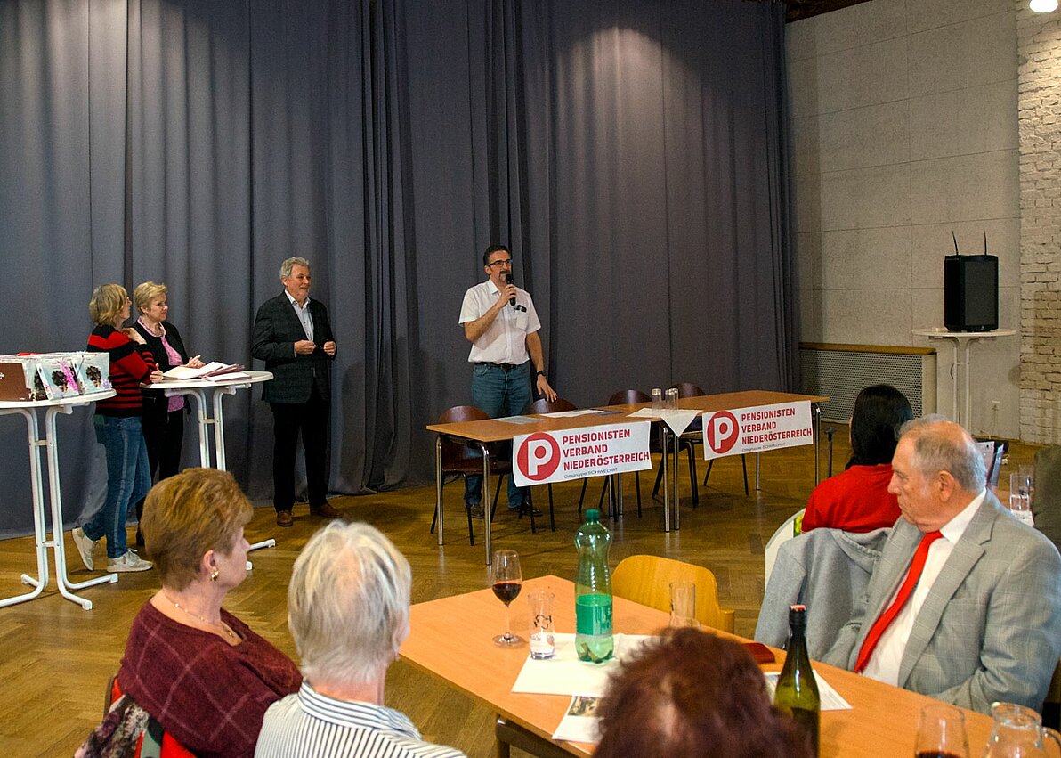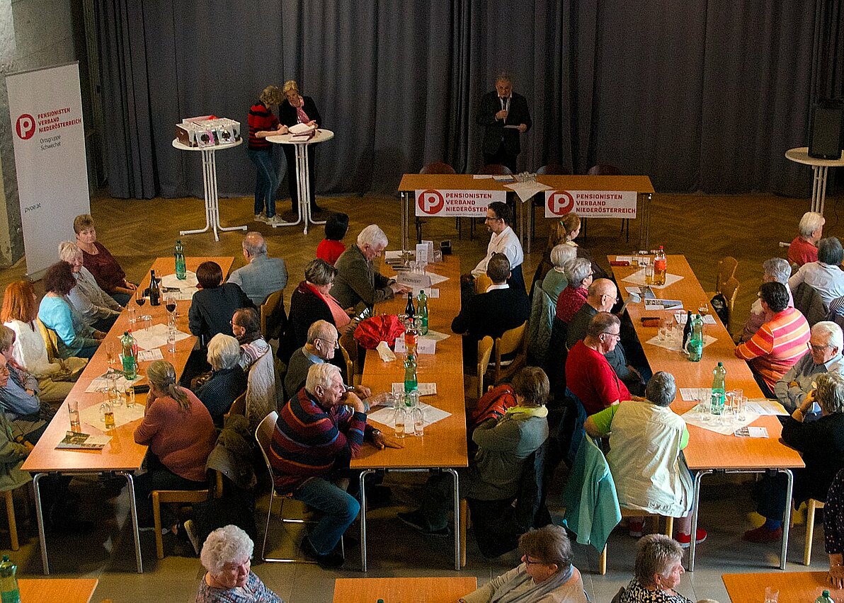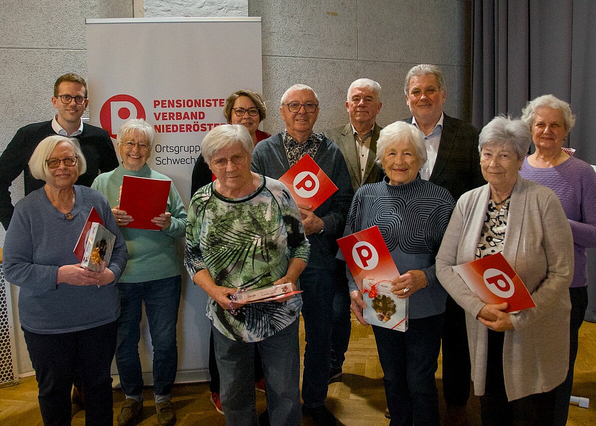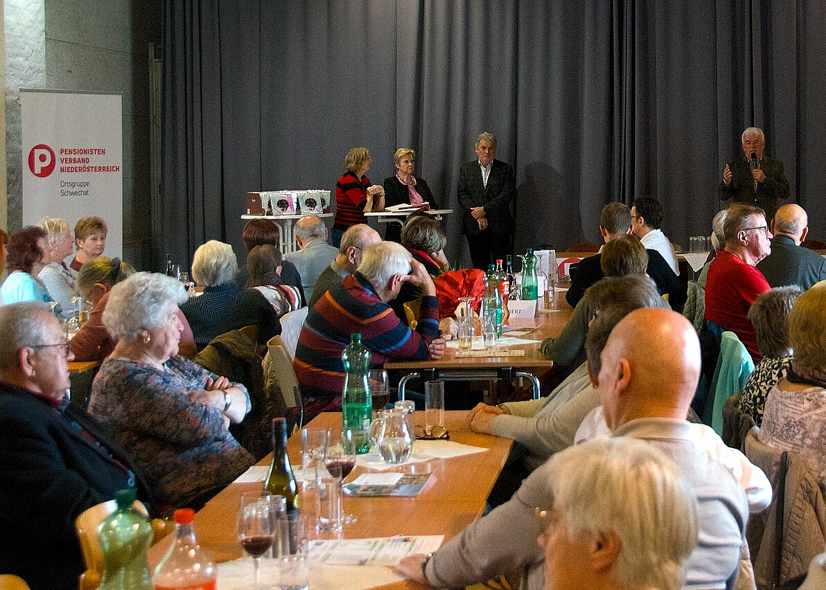 Nach den Kurzreferaten von dem Regionalleiter der Volkshilfe zum Thema Pensionisten im Alltag “Wer hilft mir“ und dem Bezirksvorsitzenden Willi Dibon über die Aufgaben und Aktivitäten des PVNÖ-Bezirks Schwechat wurden 41 Mitglieder für ihre langjährige Mitgliedschaft von der Frau Bürgermeisterin und dem Bezirksvorsitzenden des PVNÖ-Bezirks Schwechat geehrt.
