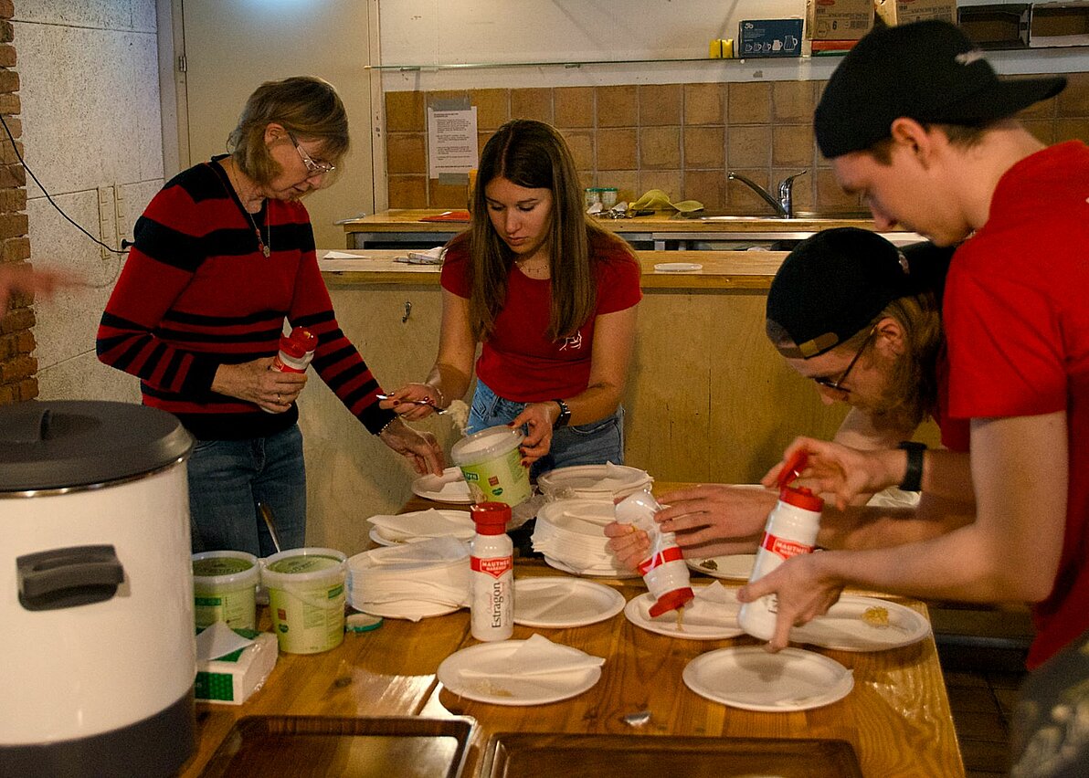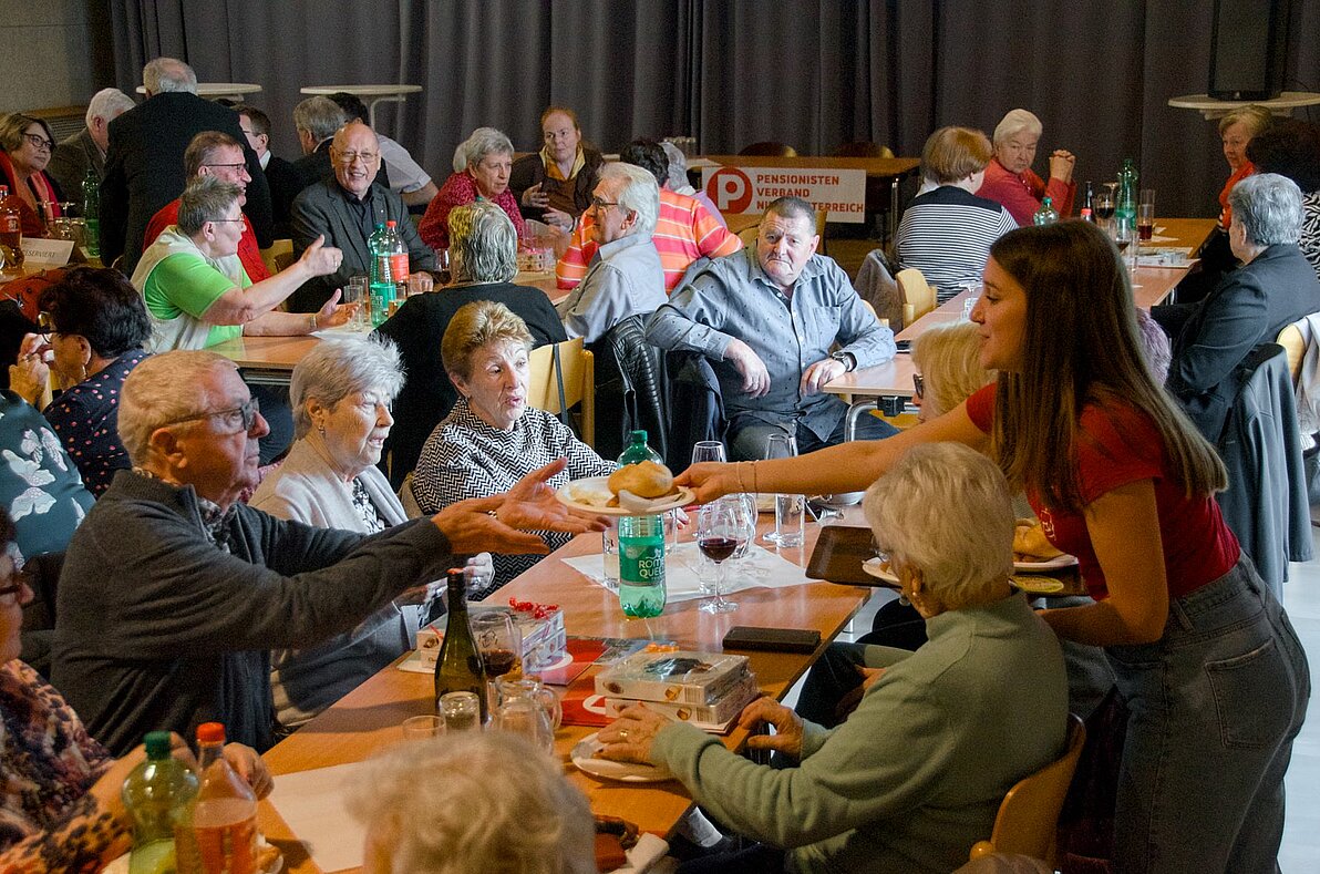 Nach Ende der Versammlung gab es ein gemütliches Beisammensein mit einem kleinen Imbiss, wo die JG der SPÖ Schwechat den Pensionisten unter dem Motto der Veranstaltung ALT und JUNG GEMEINSAMM in die ZUKUNFT für die Imbissausgabe tatkräftig unterstützten.