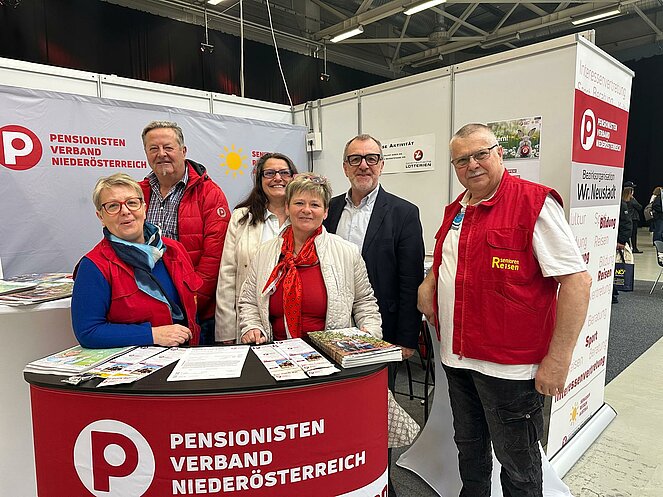 Der Pensionistenverband Niederösterreich war mit einem eindrucksvollen Stand bei der „Forever 60“-Messe in der Arena Nova vertreten – und durfte sich über zahlreiche interessierte Besucherinnen und Besucher freuen.