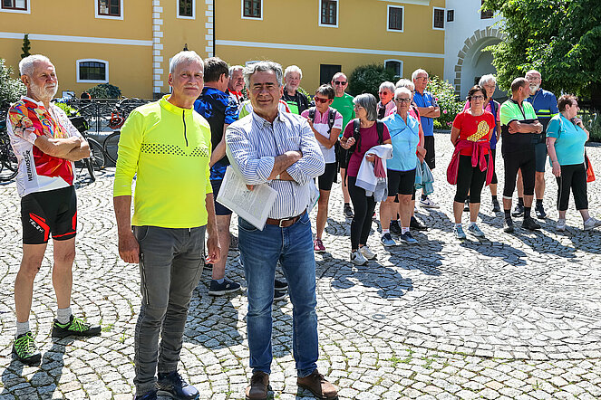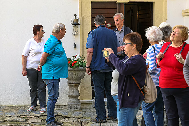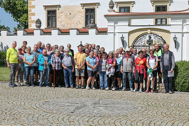 45 Personen, 24 Teilnehmer mit dem Rad und 21 mit dem Auto, nahmen an der Schlossbesichtigung von Schloss Drösiedl, durchgeführt von der Ortsgruppe Groß-Siegharts des PVÖ NÖ, teil. Das Schloss Drösiedl befindet sich im Gemeindegebiet von Ludweis-Aigen und ist mit Sicherheit eines der wichtigsten profanen Bauwerke im Bezirk Waidhofen/Thaya. Ihre heutige Form geht auf das16. Jahrhundert zurück. Vor allem als Fotomotiv ist Schloss Drösiedl sowohl bei Touristen als auch bei Einheimischen sehr beliebt. Schlossherr Werner Zlabinger, mit Unterstützung seiner Gattin Monika und Fritz Kadernoschka, zeigten im Zuge der Führung einen Überblick über das Schlossareal und Highlights in und um Schloss Drösiedl. Bei der Heimfahrt gab es noch einen stimmungsvollen Abschluss im Gasthaus Peschel in Fistritz.