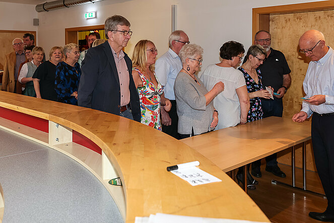 Obwohl bei den Gastgebern der ehemalige Stadtrat Erich Mayer als Tagesbester mit 8 gewonnenen Bummerln hervorstach, konnten die Gäste aus Vitis mit je 7 gewonnen Bummerln durch die beiden Zugpferde Bezirksobmann Leopold Kapeller und geschäftsführenden Gemeinderat Walter Katzinger klar dagegenhalten. Die beiden Ortsgruppen des Pensionistenverbandes Groß-Siegharts und Vitis trafen sich am 26. Februar im Gasthaus Schlossplatzl in Groß Siegharts zu einem freundschaftlichen Schnapserwettkampf. Von jeder Mannschaft traten 10 Starter an und spielten insgesamt 100 Bummerln aus, wobei nach knapp 2 Stunden Vitis mit 52 zu 48 als Sieger hervorging. Obwohl bei den Gastgebern der ehemalige Stadtrat Erich Mayer als Tagesbester mit 8 gewonnenen Bummerln hervorstach, konnten die Gäste aus Vitis mit je 7 gewonnen Bummerln durch die beiden Zugpferde Bezirksobmann Leopold Kapeller und geschäftsführenden Gemeinderat Walter Katzinger klar dagegenhalten. Auch ein Dutzend Schlachtenbummler aus Vitis waren mit dabei. Während sich die Spieler mit so manchem harten Gegner duellierten, besuchten sie im nahen Schloss Groß-Siegharts das Sparkassenmuseum. Hier erhielten sie in einer interessanten Führung Informationen aus erster Hand vom ehemaligen Sparkassendirektor Reinhold Weikertschläger. Bevor es nach dem Match zum gemeinsamen Fototermin ging, bedankte sich Bezirksobmann Leopold Kapeller bei allen Spielern für die Fairness, empfahl häufiges Training und überreichte an den Tagesbesten einen Pokal. Die Vitiser Ortsgruppenobfrau Inge Kapeller sprach an die Gastgeber eine Gegeneinladung nach Vitis aus. Zum Abschluss lud Ortsgruppenobmann Franz Schelm namens des Pensionistenverbandes Groß-Siegharts alle Spieler und Begleiter zu einer gemeinsamen Jause.