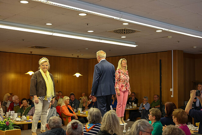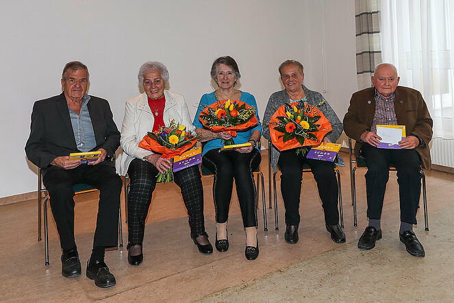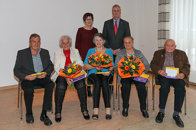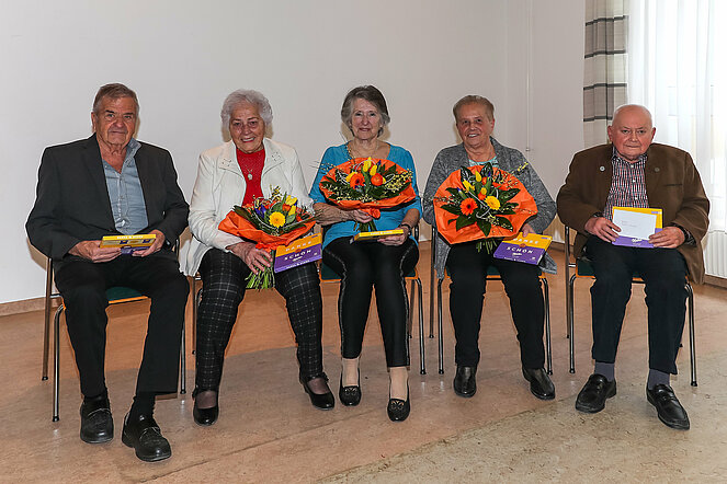 Es gratulierten Gatte Helmut, Claudia Rössner, Stadtrat Christian Kopecek, von Seite des Pensionistenverband Christine Armberger und Obmann Franz Schelm.