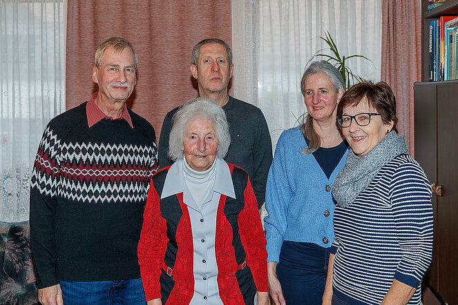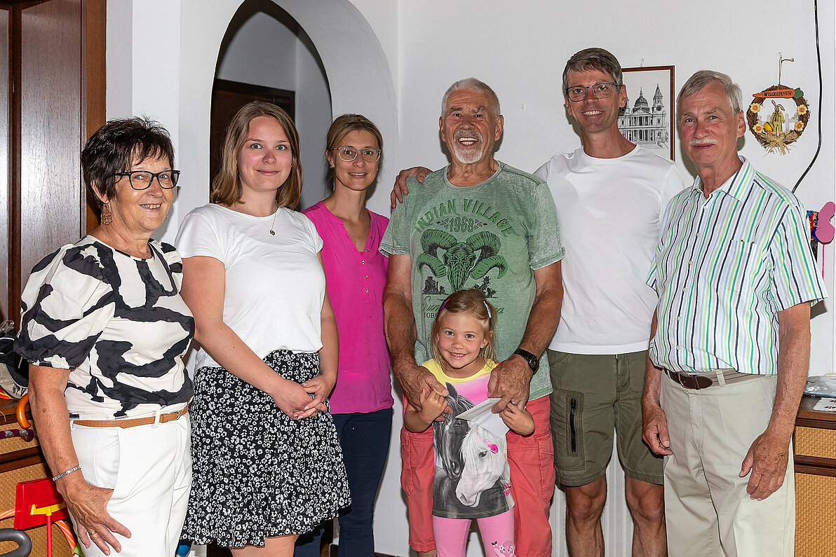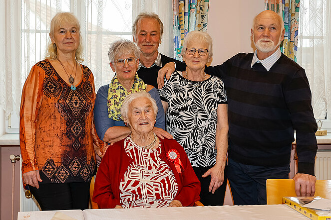Es gratulierten Sohn Siegfried, Schwiegertochter Verena, die Enkeltöchter Lena und Lisa-Marie und vom Pensionistenverband Groß-Siegharts Christine Armberger und Obmann Franz Schelm.