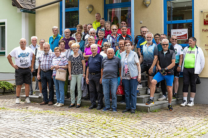 38 Teilnehmer, davon 17 Radfahrer, machten mit beim Halbtagesausflug zur Firma Herka mit Betreiebsbesichtigung und Abschluss in der Dorfschenke von Tiefenbach.