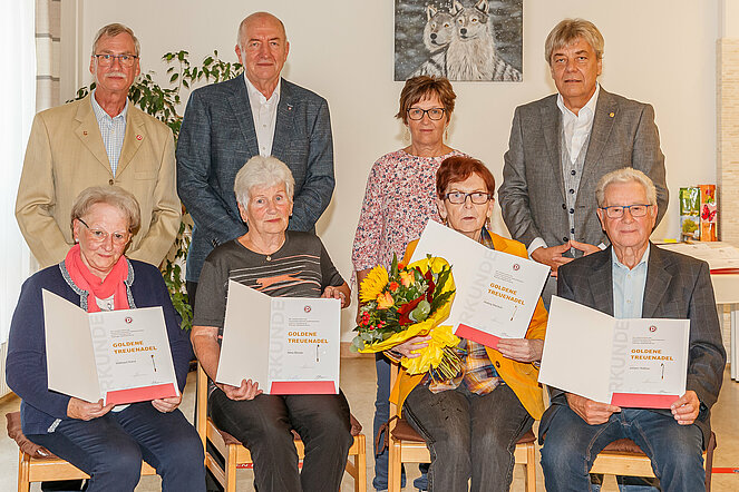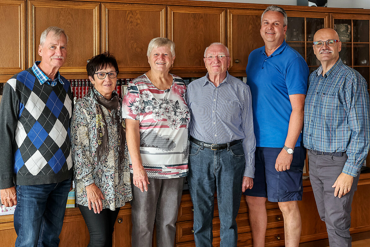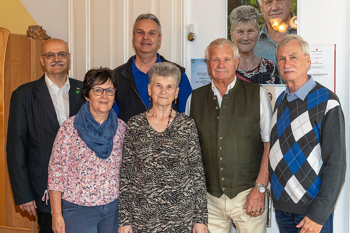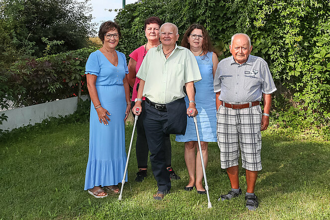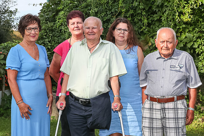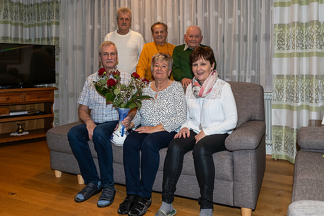 Das Ehepaar Gertrude und Franz Schelm, Obmann des PVÖ Groß-Siegharts, feierte goldene Hochzeit. Von Seiten des Pensionistenverband Groß-Siegharts gratulierten Christine Armberger und Franz Malzer. Weiters im Bild, Monika Malzer und Josef Armberger.