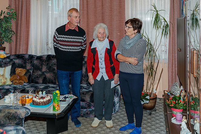 Aloisia Wanko feierte ihren 99. Geburtstag im Kreise ihrer Familie. Eine Abordnung des Pensionistenverband mit Obmann Franz Schelm und Obmannstellvertreterin Christine Armberger überreichten der Jubilarin ein Geschenk und gratulierten ganz herzlich.