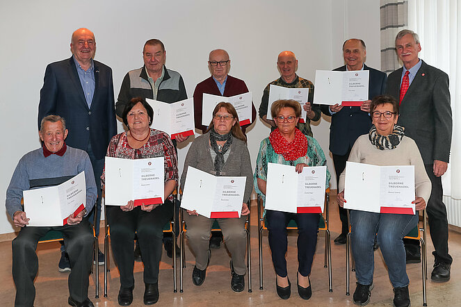 Seitens der Gemeinde gratulierten Bürgermeister Ullrich Achleitner und Stadtrat Christian Kopecek, seitens des PVÖ Groß-Siegharts Obmann Franz Schelm und Obmannstellvertreterin Christine Armberger
