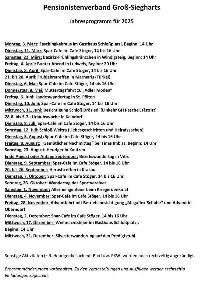 Jahresprogramm 2025