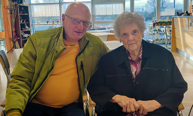 Herbert Wolf überbrachte Weihnachtsgrüße in das PBZ Raabs an die fünfundneunzigjährige Czeland Margarete. Im Bild - Herbert Wolf mit Margarete Czeland.