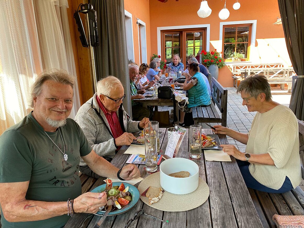Am Donnerstagnachmittag, dem 7. August 2025, war wieder Stammtisch angesagt – und wir hatten Glück: Hutti sperrte extra für uns auf! Kaum saßen wir, kam schon die legendäre Jause auf den Tisch. So üppig, dass wir fast einen Sitzplan für Wurst, Käse und Brot gebraucht hätten. Zwischen herzhaftem Bissen und fröhlichem Geplauder verging der Nachmittag wie im Flug – und am Ende war klar: So macht man das gern wieder!