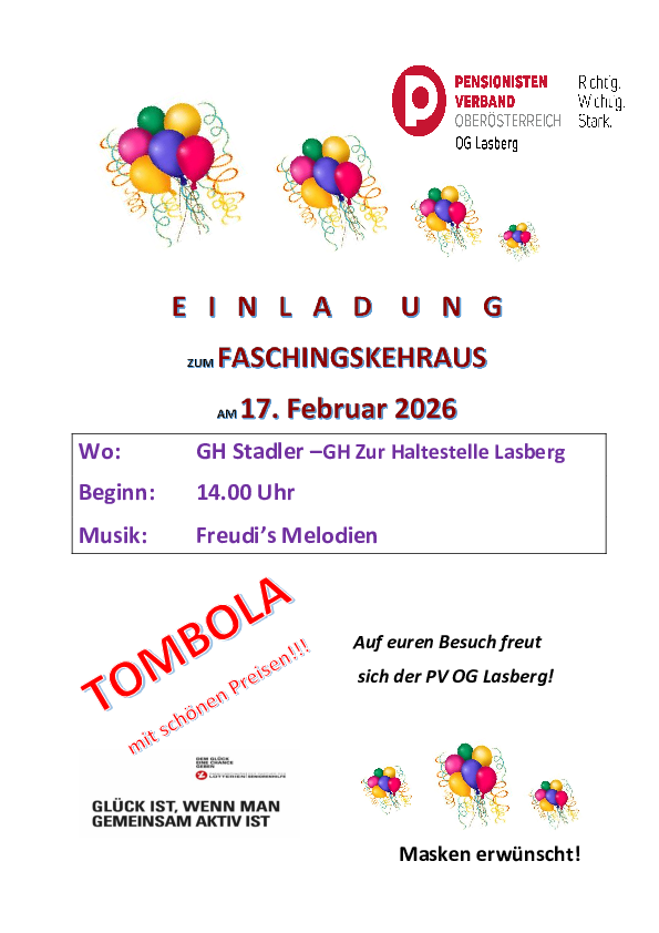 Einladung zum Faschingskehraus am 17. Februar 2026