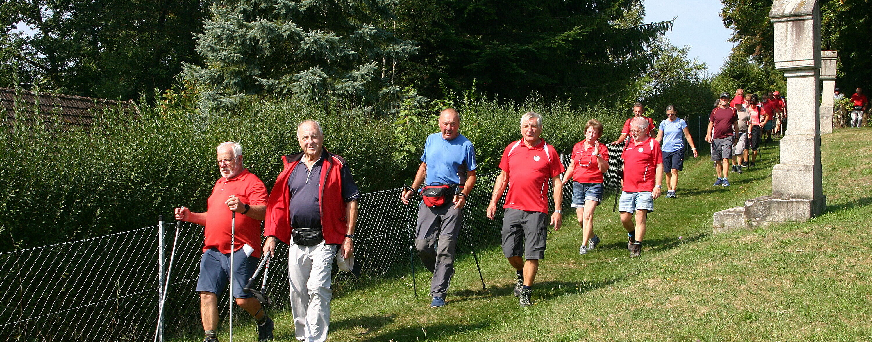 Es ist daher kein Wunder, dass trotz der angekündigten sommerlichen Temperaturen gut 370 Personen sich auf die von Ortsvorsitzendem Manfred Wurm und Sportreferenten Johann Groß mit gut 40 Helferinnen und Helfern bestens ausgestattete und betreute Strecke machten. Manche mit großem Überblick allerdings übersahen bisweilen die ihrer Ansicht nach sehr kleinen Markierungsschilder und machten sich abseits der Route auf Entdeckungstour. Es fanden alle aber wieder zurück und genossen Erfrischung und Stärkung in den Labstellen.