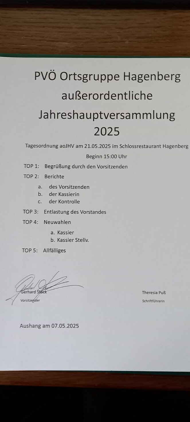 Am 21. Mai fand die außerordentliche Jahreshauptversammlung im Schlossrestaurant statt.