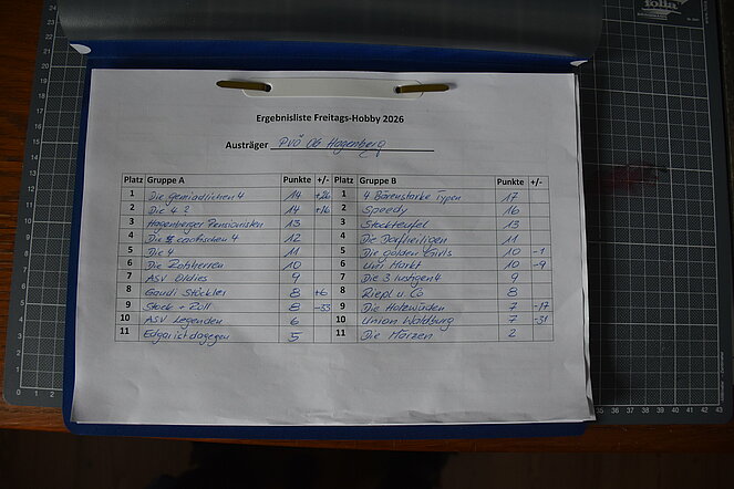 Am Freitag, den 13. Februar organisierte die Ortsgruppe Hagenberg im Rahmen der Freitags-Hobby Turniere in der Stockhalle des ASKÖ Hagenberg zum ersten Mal nach langer Zeit wieder ein Turnier. Gemeldet haben sich 22 Moarschaften, die in zwei Gruppen gegeneinander angetreten sind. Mit sportlichem Ehrgeiz in lockerer Atmosphäre wurden die einzelnen Strecken mit mehr oder weniger Erfolg absolviert.