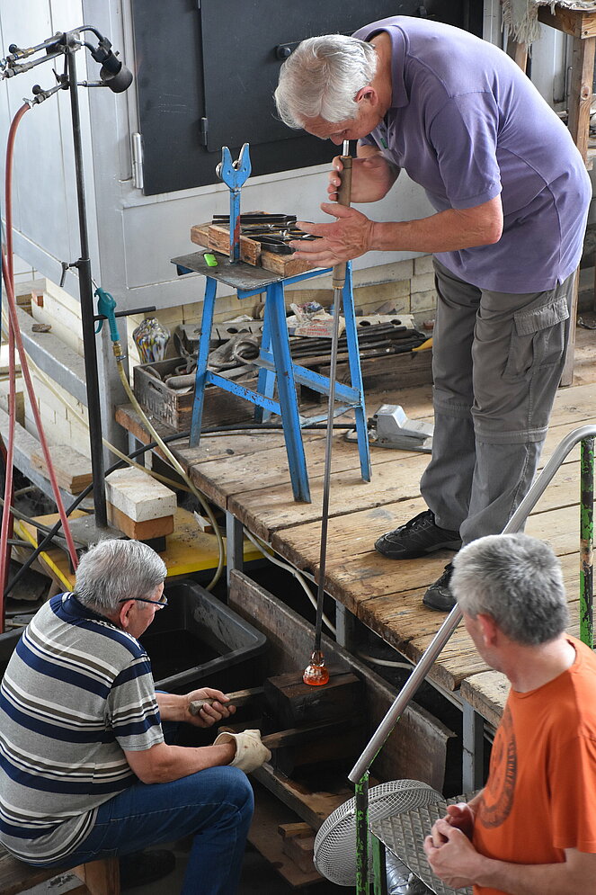 Es ging über Freistadt und Sandl nach Gmünd zur Station der Waldviertelbahn. Von dort fuhren wir mit dem 'goldenen Triebwagen' bis Alt-Nagelberg zur Glashütte Apfelthaler. In der Glashütte konnten wir den Glasbläsern bei der Arbeit auf die Finger (bzw. auf's Glas) schauen. Die Werke des Glashütte können im angeschlossenen Park im Zuge eines kleinen Spazierganges bestaunt werden.