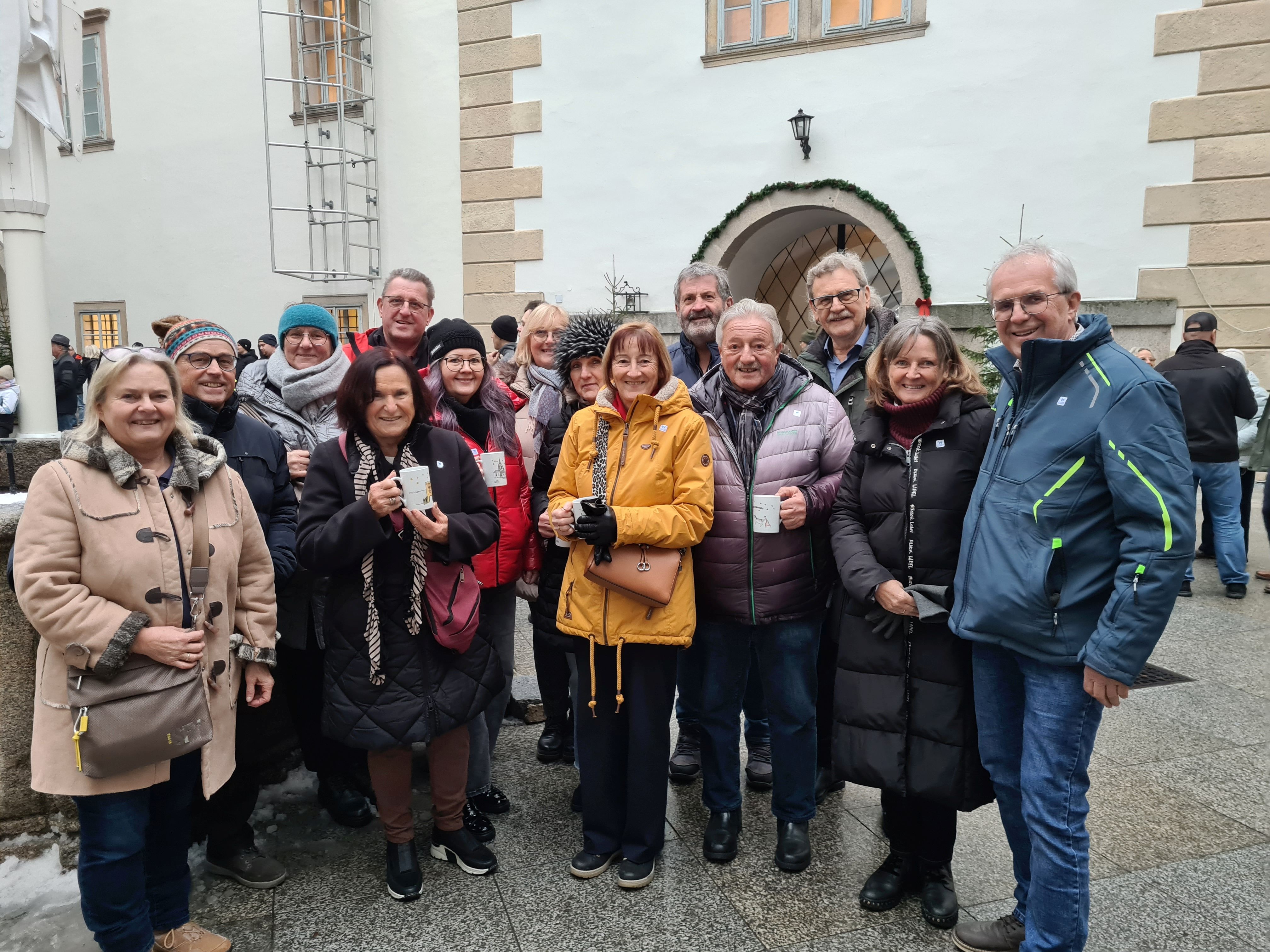 Am 29. November 2025 machten wir uns mit 2 Kleinbussen auf den Weg, um den Adventmarkt in Weitra zu besuchen. Der Weihnachtsmarkt war sehr gut besucht, daher war die Parkplatzsuche eine Herausforderung. Im Schloss gab es Handwerkskunst, Weihnachtsschmuck und viele Dekorationsartikel für Weihnachten zu bestaunen und zu kaufen. Im Schlosshof gab es Punschstände.
