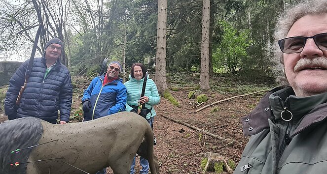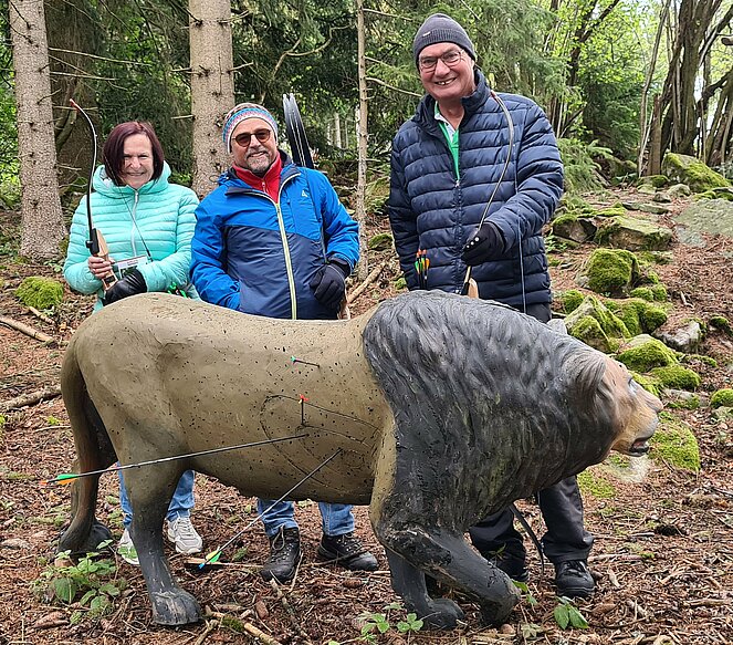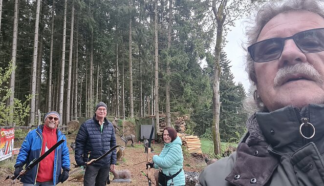 Trotz kaltem Wetter sind wir heute nach Windhaag bei Freistadt gefahren und haben bei leichtem Schneefall einmal das Bogenschießen ausprobiert. Vom Gasthaus zum Waldlehrpfad, Familie Rudelstorfer haben wir uns das erforderliche Equipment ausgeborgt und sind sogleich zum Einschießplatz gegangen. Der Familienparcours hat aktuell 20 Stationen, die wir mit Leichtigkeit bewältigt haben. Nervig war nur bei den ersten Stationen, dass wir die verschossenen Pfeile suchen mussten. Alle Pfeile wurden relativ rasch gefunden. Danach waren wir aber in guter Schusslaune, so dass wir keine Pfeile mehr suchen mussten. Der Löwe wurde aus dem Rundkurs genommen. Wir haben ihn aber gefunden und wie man sieht auch erlegt. Der Abschluss im Gasthaus Rudelstorfer mit Speisen à la carte und erfrischenden Getränken war der eigentliche Höhepunkt.