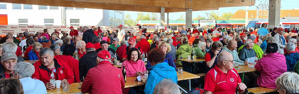 Bereits kurz vor 7 Uhr fuhren wir zur Messehalle in Freistadt und bestiegen den Bus nach Eferding. Kurz nach der Ankunft in Eferding verbrachten wir die erste halbe Stunde mit Anstellen – für die Anmeldung zum Start und den Kauf von Essens- und Getränkemarken – danach ging es sofort los. Wir kamen nach Hinzenbach, haben die Sprungschanze aber nicht gesehen. In Eferding angelangt labten wir uns mit einem Kaffee. Weiter ging es wieder zurück zum Ausgangspunkt. Wir stärkten uns mit Essen und Trinken und durften dann die Ansprachen zur 75 Jahr Feier des Pensionistenverbandes miterleben. Am frühen Nachmittag ging es mit dem Bus wieder retour.