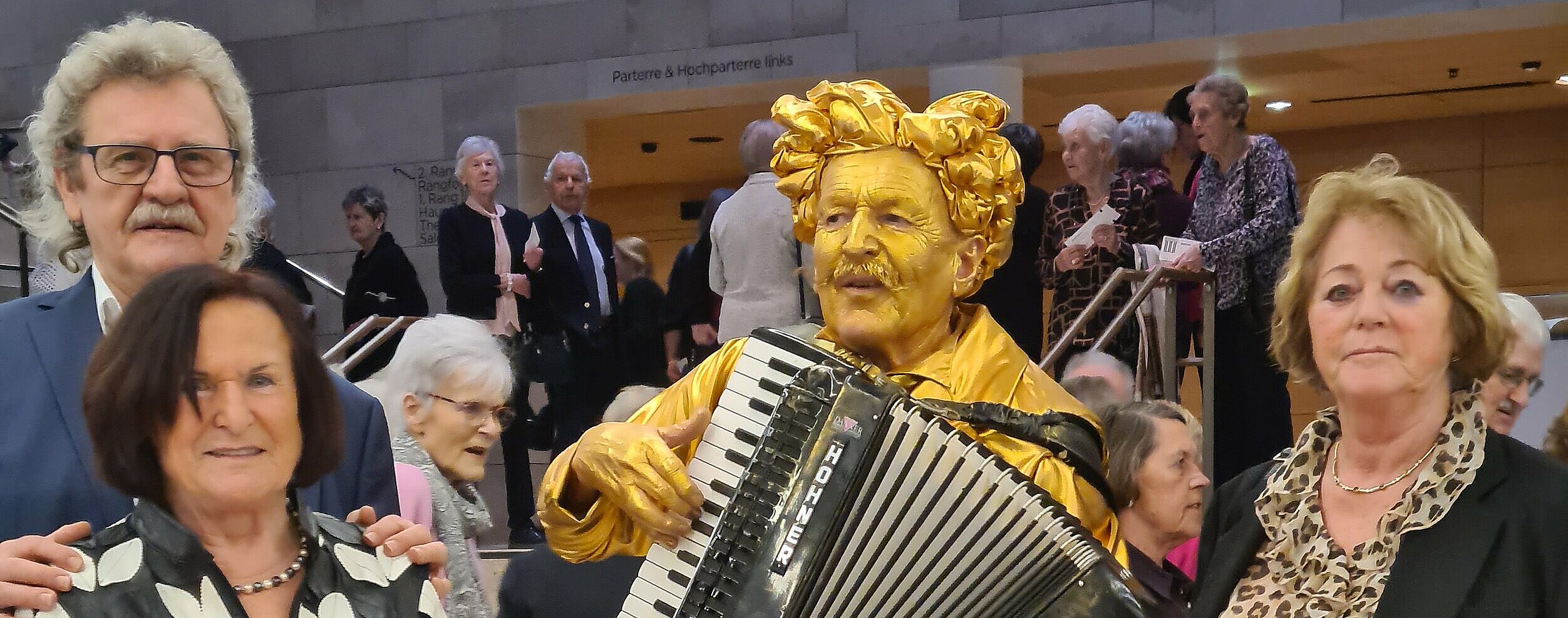 Der Pensionistenverband lud anlässlich des Valentinstages ins Musiktheater in Linz ein. Die Operette Wiener Blut von Johann Strauß wurde nachmittags dargebracht. In den Hauptrollen: Bernhard Walchshofer am Akkordeon als Johann Strauß und der beliebte Kabarettist und Schauspieler Thomas Mraz, der Partner von Gery Seidl in „Aufputzt is“. Aufgefallen ist auch, dass fast lauter weiße Köpfe im Publikum zu sehen waren. Die dreistündige Darbietung war nie langweilig und hat uns sehr gefallen.