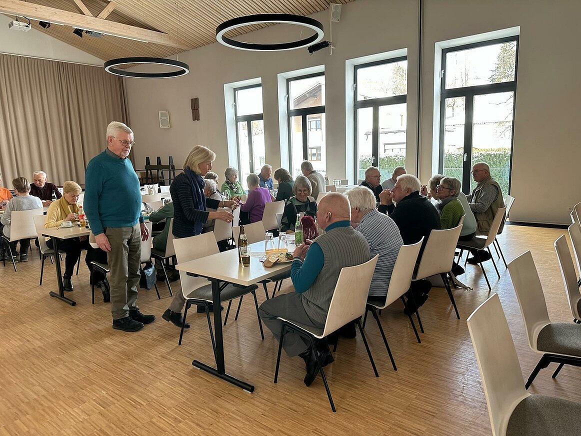 Rund 70 Mitglieder der Ortsgruppe Neumarkt versammelten sich kürzlich zum traditionellen Heringsschmaus im Pfarrheim. Das engagierte „Seiberlteam“ verwöhnte die Seniorinnen und Senioren mit hausgemachtem Heringskäse sowie einer feinen Auswahl an Kaffee und Kuchen. In geselliger Runde genossen die Teilnehmer einen kurzweiligen Nachmittag, bei dem der Austausch und die gute Unterhaltung im Mittelpunkt standen.