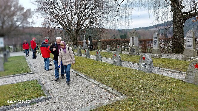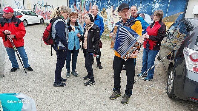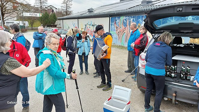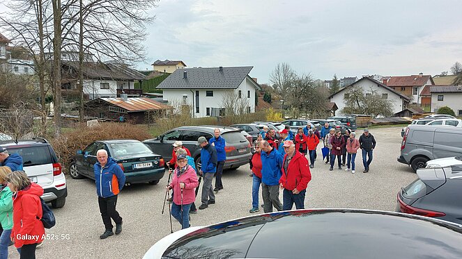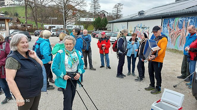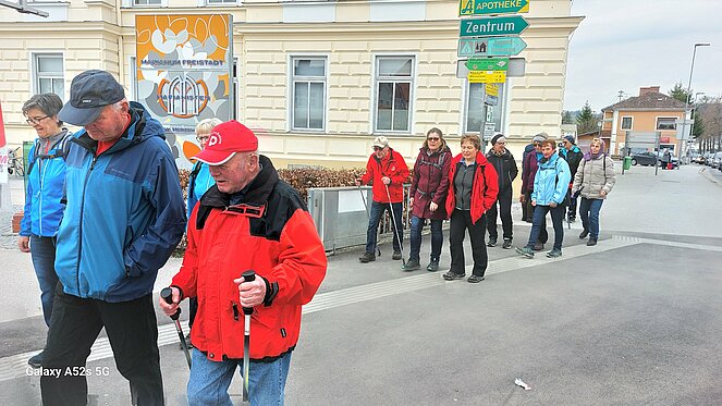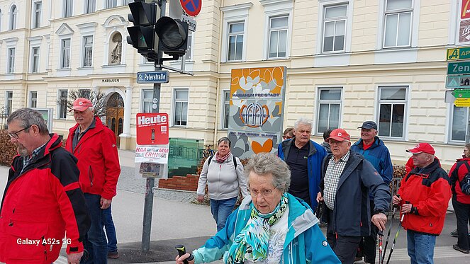 Unsere 1. Wanderung startete bei super Wanderwetter. Wir umkreisten die Stadt, vom Bockauwirt zur Union Sportanlage weiter über den Pregartenteich zum Stifterplatz. Nach dem Besuch des Kachelstudios ging es weiter zur Arbeiterkammer, von dort über die Tanzwies durch den Stadtgraben bis zur Tennisanlage. Kurti versuchte sich als Wünschelrutengänger und tatsächlich - sie zeigte Flüssigkeit an! In seinem, dort geparkten Auto fand er Wasser und Bier. Sogar Mehlspeisen zeigte die Wünschelrute an. Der Ausblick auf die Bogenbrücke der S10 faszinierte uns alle. Kurti`s musikalische Ständchen und die Stärkung erleichterten uns die Fortsetzung unserer Tour. Über den Kreisverkehr ging es bergan zum Friedhof und der Gedenkstätte der sowjetischen Soldaten. Die Chemieteiche ließen wir links liegen und wir erreichten die wunderschöne Hubertuskapelle. Beim Bockauwirt endete unsere Wanderung.
