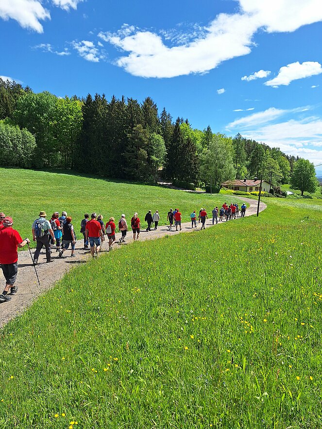 Vom Glockerwirt ging es Richtung Loitzendorf - der Ausblick bis zum Traunstein und das gesamte Gebirge bis zum Ötschergebiet war für einige Wanderfreunde ganz neu. Weiter führte der Weg zur "Whisky Brennerei" von Peter Affenzeller. Die Erweiterung seiner Anlage ist wunderschön und lädt zum Sitzen und genießen ein. Am Güterweg wanderten wir weiter bis zum Bürstenbach, diesen entlang kamen wir beim Tipi - Dorf vorbei zur Maria Schutzgrotte. Danach, am Alberndorfer Kreuzweg ging es stetig bergauf bis nach Alberndorf. Über Berbersdorf erreichten wir Pröselsdorf, wo wir beim Glockerwirt einkehrten. Christian und Erika organisierten und besichtigten diese wunderbare Wanderung und legten den Verlauf fest.