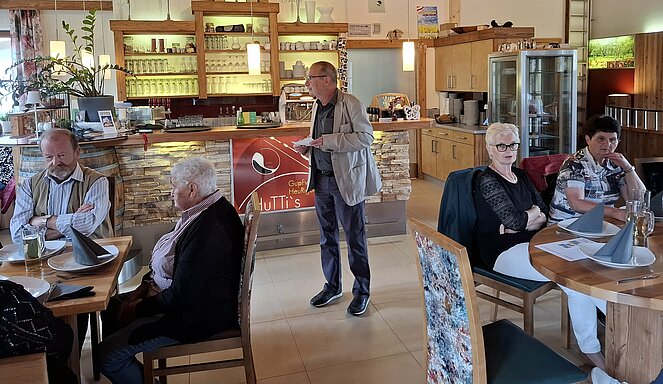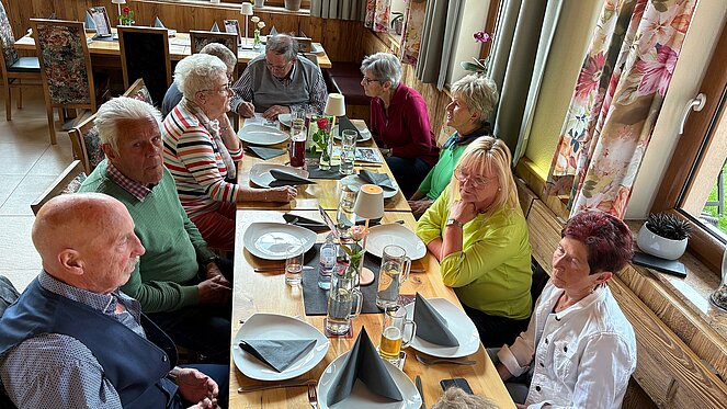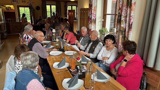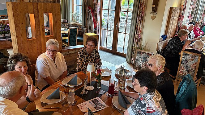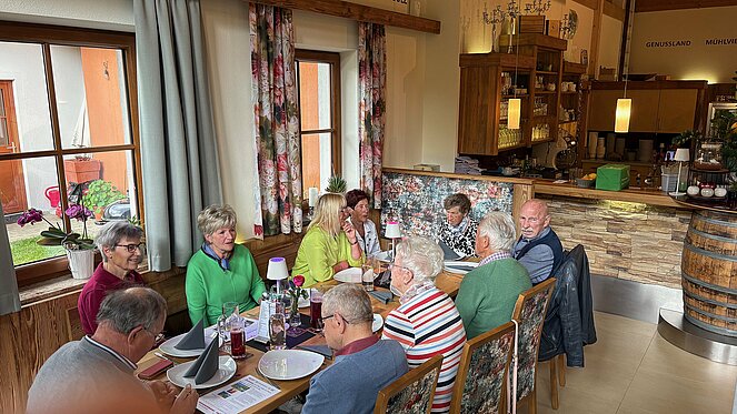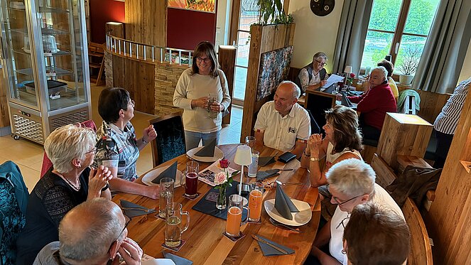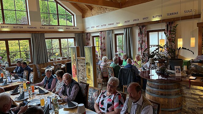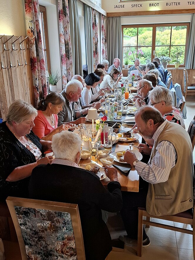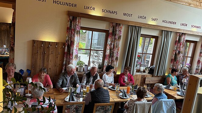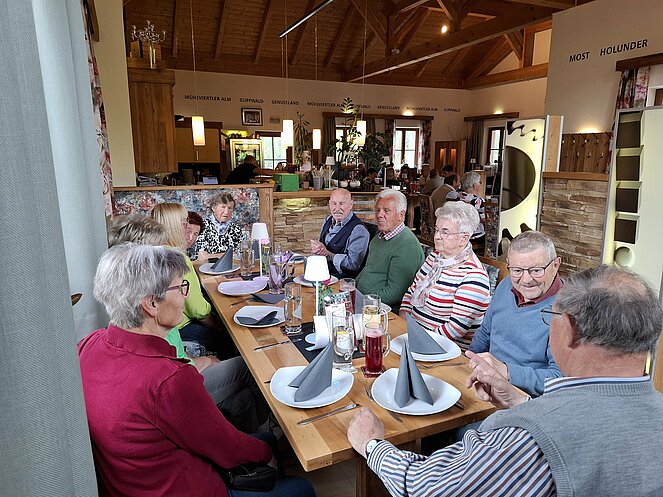 Gut 40 Mitglieder folgten der Einladung am Donnerstag 15. Mai zur Muttertagsfeier, welche erstmals beim Mostheurigen "HUTTI" in Pierbach abgehalten wurde. Nach der Begrüßung und aktuellen Informationen durch Vorsitzenden Herrn Leo Klinger erhielten die Mitglieder von der Ortsgruppe ein Mittagessen mit Getränk. Es gab "Bratl in der Rein" und für die "Fleischabstinenzler" Gemüse-Kaspressknödel mit Salat.