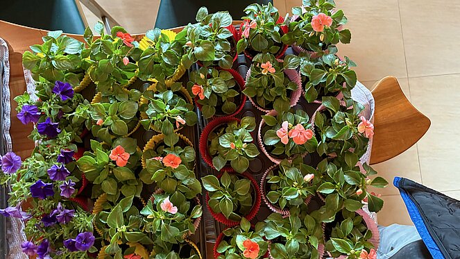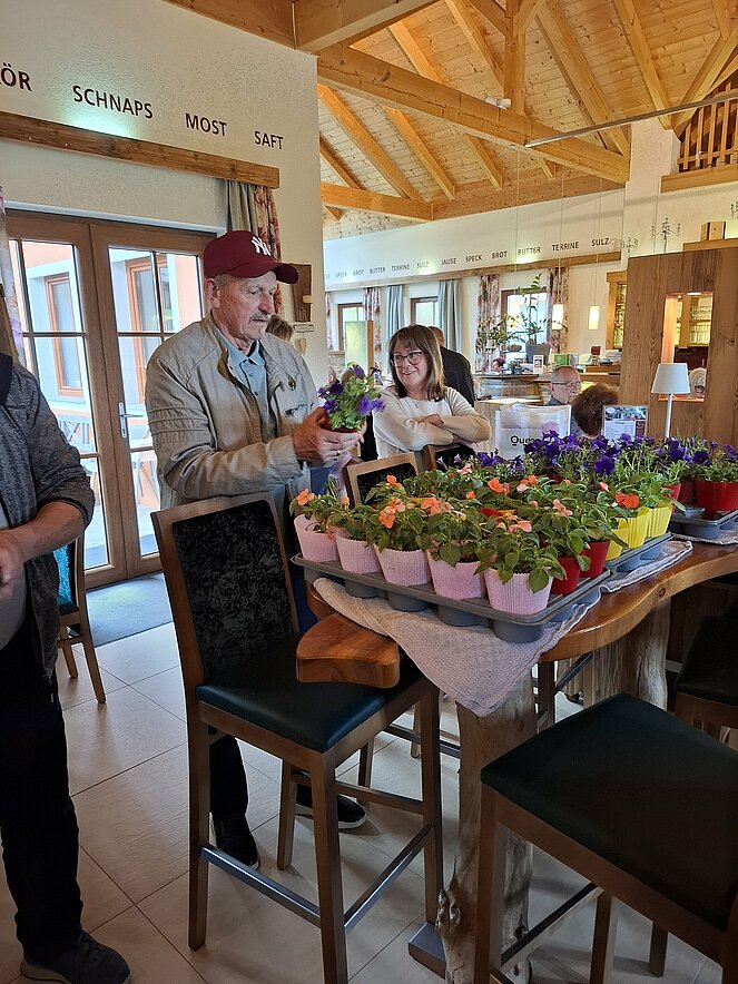 Jede Dame erhielt ein kleines Blumenstöckchen zum Muttertag von der Ortsgruppe.