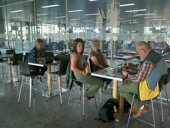Der Flughafen Linz ist überschaubar, was die Abwicklung angenehm und zügig macht. Nach der Gepäckaufgabe und der Sicherheitskontrolle blieb noch Zeit, um sich im Wartebereich kurz zu stärken, bevor das Boarding begann.