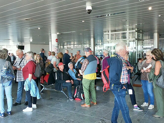 Am frühen Morgen begann die Reise in Bad Zell. Das Gepäck wurde verladen, und die Fahrt zum Flughafen Linz (Blue Danube Airport) startete. Die Strecke führt über die B124 Richtung Linz, und nach etwa 45 Minuten Fahrt wurde der Flughafen erreicht. Dort erfolgte der Check-in für den Flug nach Bulgarien.