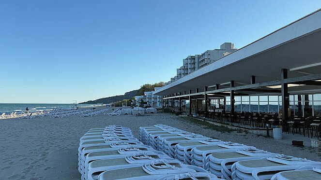 Am Albena-Strand angekommen, erwarteten den Reisenden weitläufige Strände, zahlreiche Hotels und kühle Temperaturen, Nach dem Einchecken im Hotel konnte der Urlaub direkt beginnen – mit einem gemütlichen Zusammensitzen nach den Abendessen.