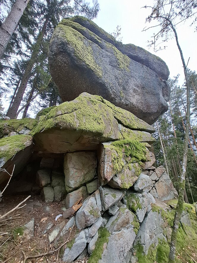 Ein Highlight sind die sogenannten „Opferschalen“ – natürliche Steinschalen, teils trocken, teils mit Wasser gefüllt, gelegen an Wimberg und Mühlberg. In einem Teilabschnitt führt eine kleine Holzbrücke zum „Opferschalenstein“ am Mühlberg.