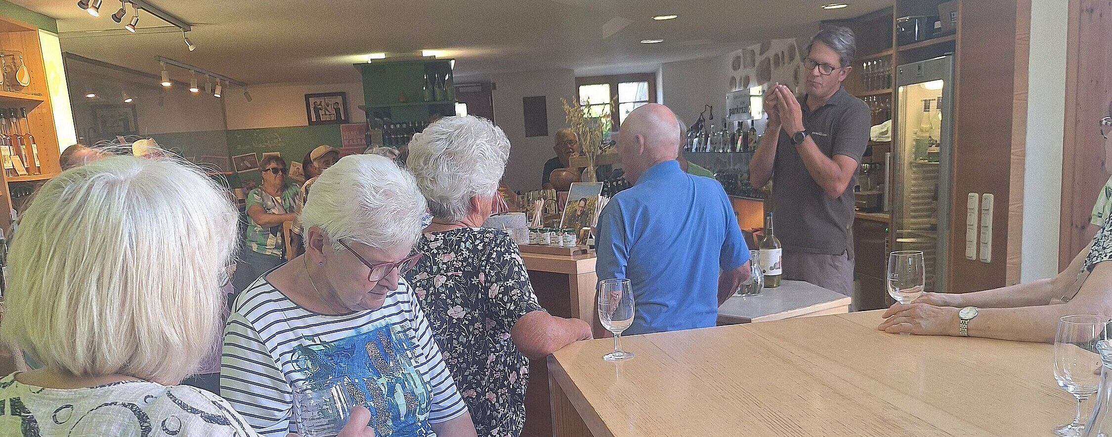 Norbert Eder, der engagierte Betreiber des Pankrazhofers, führte die interessierten Besucher persönlich durch den Betrieb. Dabei gewährte er Einblicke in die aufwändigen Produktionsprozesse und die Geschichte des Hofes. Höhepunkt der Führung war die Verkostung verschiedener Mostsorten, Frizzante und alkoholfreier Säfte. Die Gäste waren begeistert von der Qualität und dem einzigartigen Geschmack der Produkte. Interessant war auch zu hören, dass jährlich mehr als 1000 Privatpersonen beim Pankrazhofer ihr eigenes Obst zu Säften pressen lassen. Norbert Eder faszinierte auch mit seinen Einstellungen zu Nachhaltigkeit, Landschafts- und Bodenschutz und zu seiner sehr sozialen Einstellung seinen Obstlieferanten gegenüber. Sehr beeindruckt waren die Besucher/innen auch vom hochmodernen Hofladen.