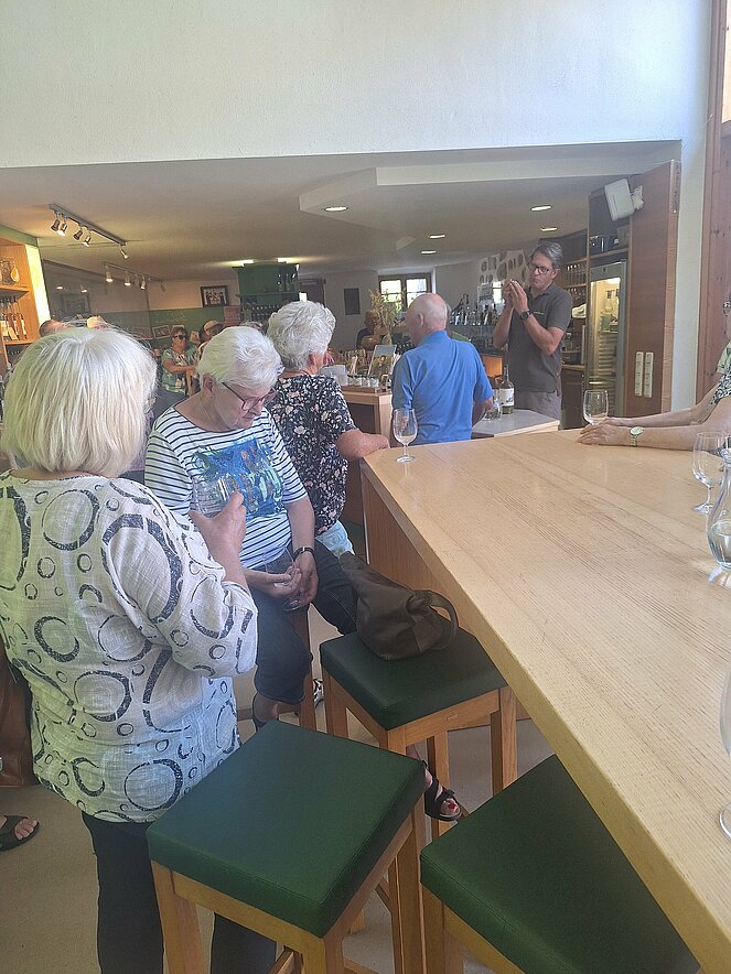 Norbert Eder, der engagierte Betreiber des Pankrazhofers, führte die interessierten Besucher persönlich durch den Betrieb. Dabei gewährte er Einblicke in die aufwändigen Produktionsprozesse und die Geschichte des Hofes. Höhepunkt der Führung war die Verkostung verschiedener Mostsorten, Frizzante und alkoholfreier Säfte. Die Gäste waren begeistert von der Qualität und dem einzigartigen Geschmack der Produkte. Interessant war auch zu hören, dass jährlich mehr als 1000 Privatpersonen beim Pankrazhofer ihr eigenes Obst zu Säften pressen lassen. Norbert Eder faszinierte auch mit seinen Einstellungen zu Nachhaltigkeit, Landschafts- und Bodenschutz und zu seiner sehr sozialen Einstellung seinen Obstlieferanten gegenüber. Sehr beeindruckt waren die Besucher/innen auch vom hochmodernen Hofladen.