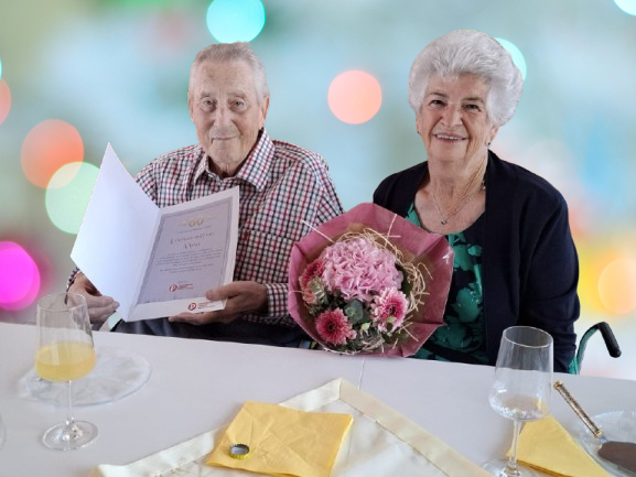 Da Franz seit März 2025 im Seniorenheim Freistadt wohnt, überbrachte unser Obmann, Manfred Wurm, zusammen mit seiner Gattin am 10. Mai die Glückwünsche des Pensionistenverbands. Sie überreichten dem Jubelpaar eine Urkunde sowie ein kleines Geschenk und wünschten ihnen weiterhin Gesundheit und viele glückliche Jahre miteinander.