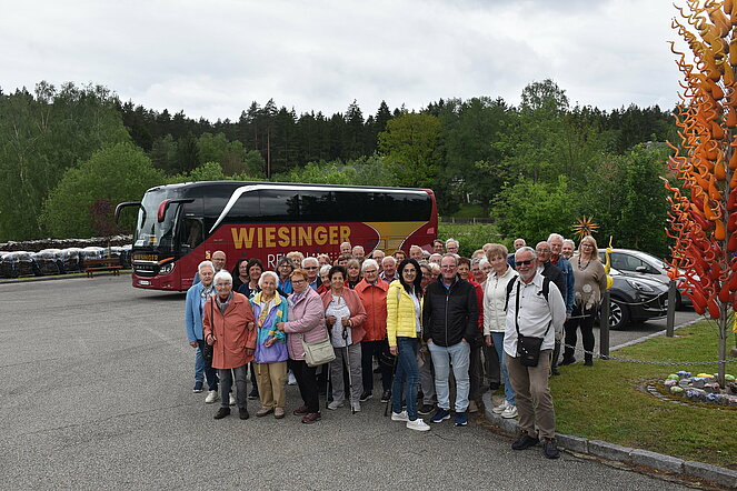Nach dem Ausstieg am Bahnsteig Alt Nagelberg gab es einen kleinen Spaziergang zur Besichtigung der Glashütte Apfelthaler und hier erlebten wir die kreative und abwechslungsreiche Arbeit der Glasbläser. Danach konnte man den schön angelegten Glaspark mit drei Teichen, dutzenden Glasskulpturen und schattigen Entspannungsoasen durchwandern. Im angeschlossenen Shop wurde noch gestöbert und das eine und andere schöne Stück Glaskunst eingekauft, bevor wir zum Mittagessen ins Gasthaus Krupnik aufbrachen. Die Wirtsleute warteten schon auf uns mit einem köstlichen Mittagessen.
