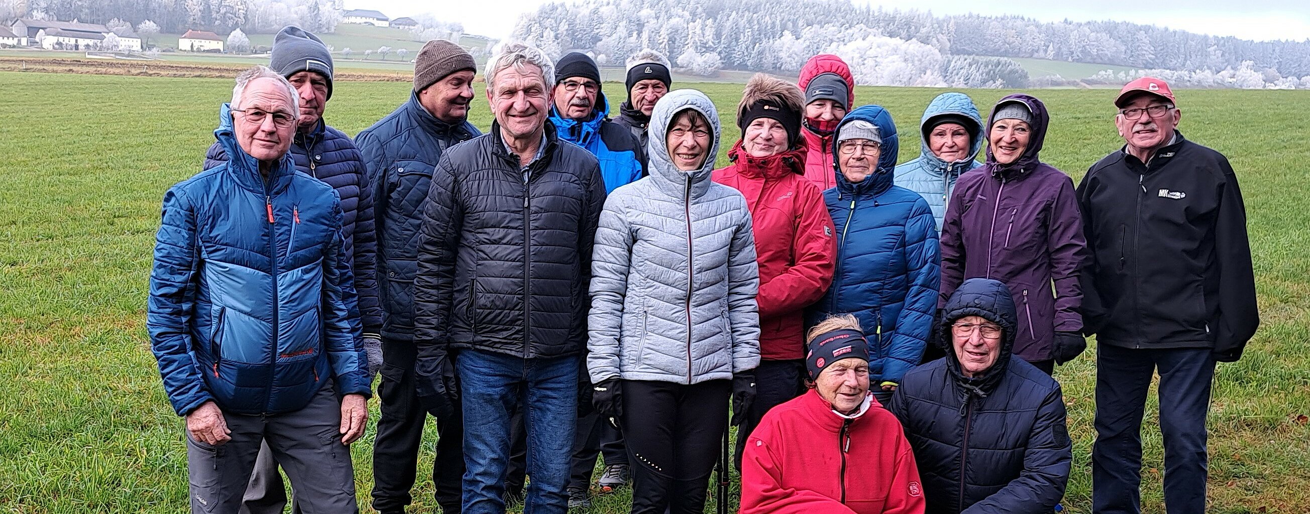Bei frostigen Temperaturen machten sich 16 wackere Wanderer vom Gasthaus Schwedenschanze in Rading auf den Rundweg durch den Miesenwald. Anfangs blies uns der eisige Wind kräftig ins Gesicht, sogar die Hirsche im Wildgatter wunderten sich über uns. Im Wald war es dann angenehm windstill und weihnachtliche Gefühle kamen bei den angeschneiten Nadelbäumen auf.