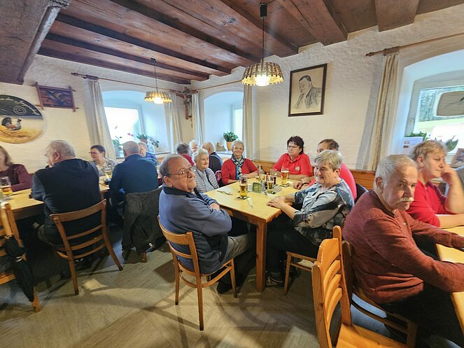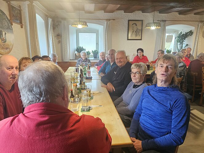 Traditionell fand wieder die Gedenkwanderung statt! Wir wanderten vom Pendlerparkplatz über die Sternwarte und die Schauflerkapelle- vorbei an goldgelb gefärbten Bäumen und durch raschelndes Laub zum Lukawirt. Einige Pensionistinnen und Pensionisten, die den "Strassenweg" wählten, waren schon eingetroffen. Monika und Michaela verwöhnten uns mit einem köstlichen Bauernschmaus. Nach einem Schnapserl von Günter ging es wieder zurück..