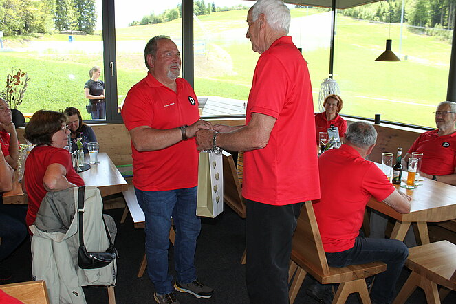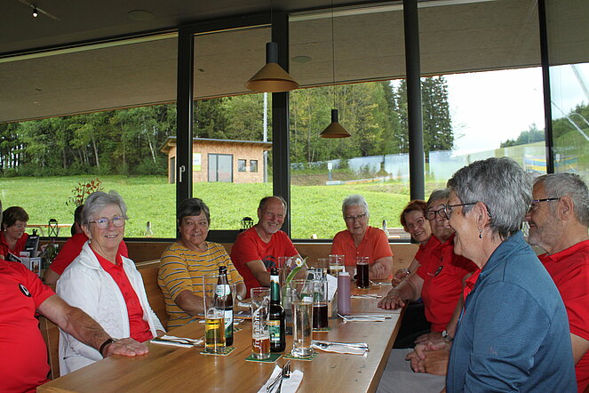 Unsere Turnabschlußwanderung machten wir heuer in Liebenau. Wir maschierten über Windhagmühl zur Brockenbergwarte und zurück, dann gabs Mittagessen in der Wintersport-Arena. Eine kleine Belohnung gab es für unsere fleißigen Vorturnerinnen. Danke dem Sportreferenten Helmut Grohmann für die Organsation.
