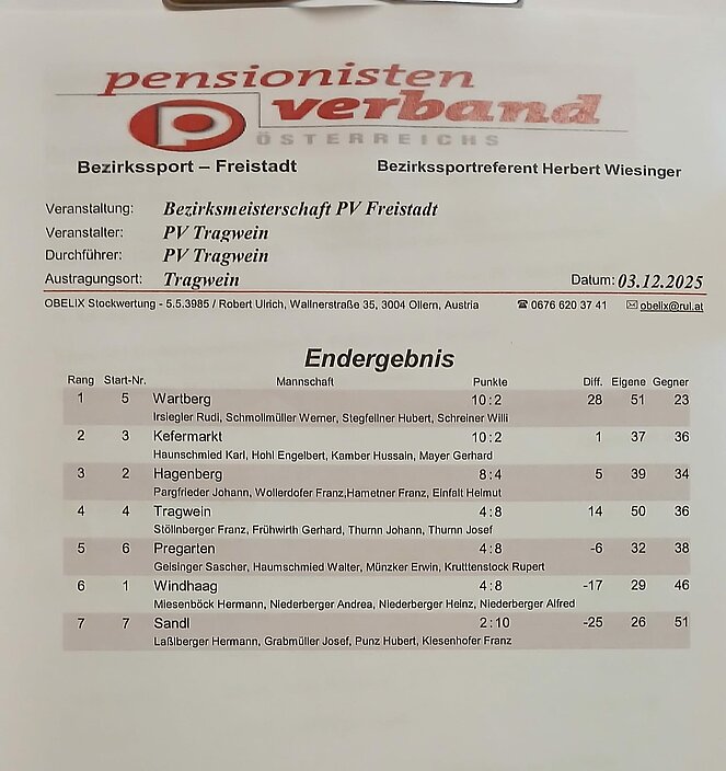 OG Tragwein- Punkterekord, mit 5972 Punkten haben wir auch wieder erreicht