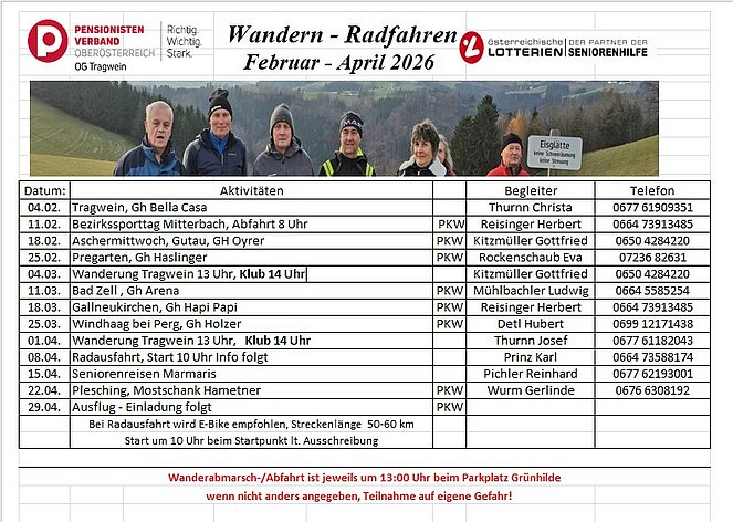 Wanderprogramm Februar - April 2026