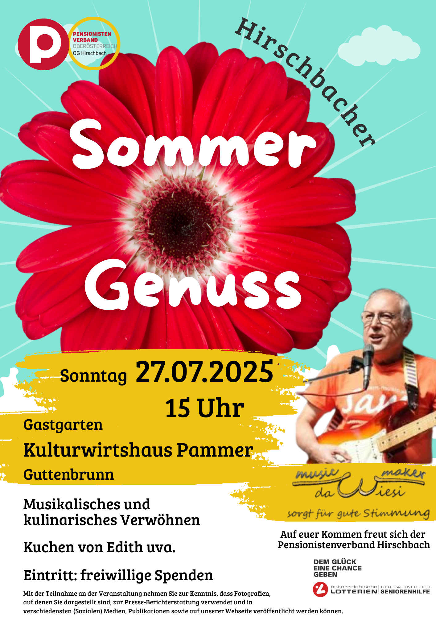 Mit einem speziellen Sommerspecial begeht die Ortsgruppe Hirschbach ihren Sommerhöhepunkt. Veranstaltungsort ist das weit über die Gemeindgrenzen hinaus bekannte Kulturwirtshaus Pammer in Guttenbrunn.